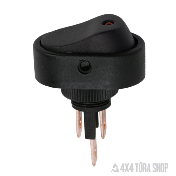 Beépíthető fekete billenőkapcsoló leddel. Széles körben használt, ideális lehet autóban, elektromos eszközök kezelőpanelján. A visszajelző lednek köszönhetően könnyen megállapítható a kapcsoló státusza.